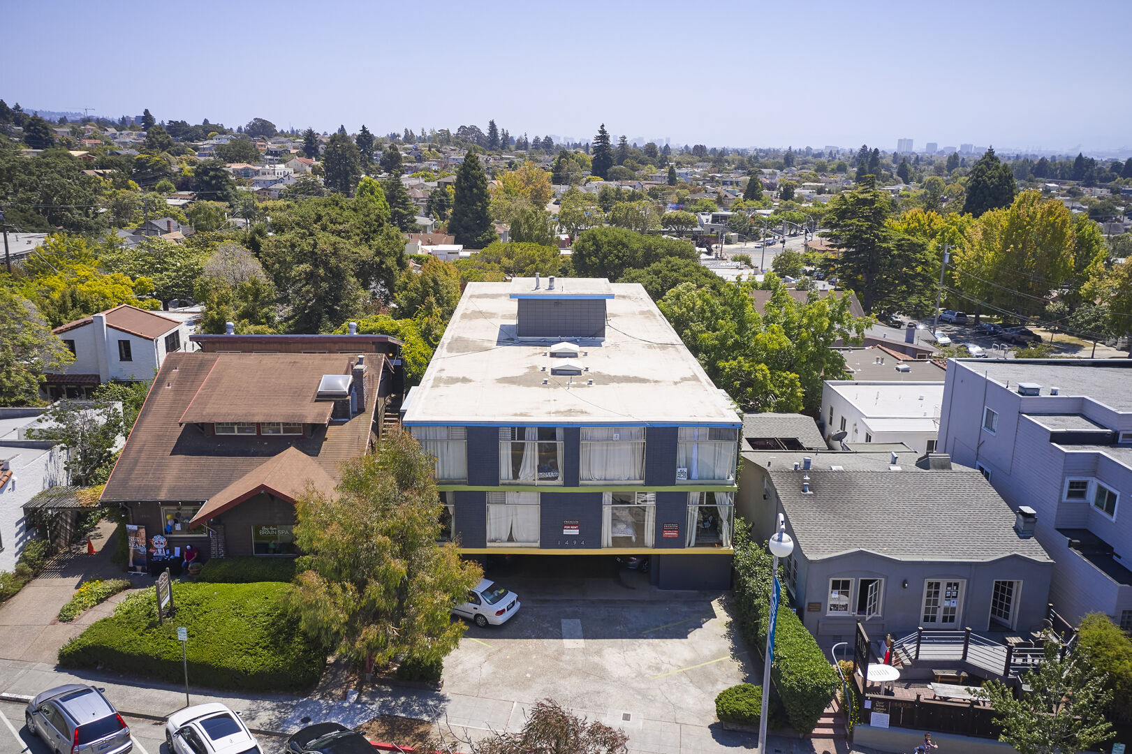 This 1960s era Mid-Century modern apartment complex features convenient access to Solano Ave just outside your front door. The building features a mix of 1-and-2 bedroom apartments, many of which have panoramic views of the beautiful surrounding Albany neighborhood. These units have incredibly large windows and tons of natural light. The entire building is in the process of being remodeled and updated to create a luxurious new feel. There is parking under the building for residents and plenty of surrounding street parking for your guests.