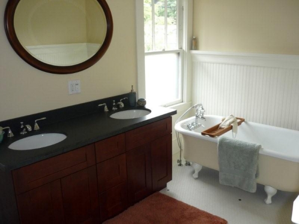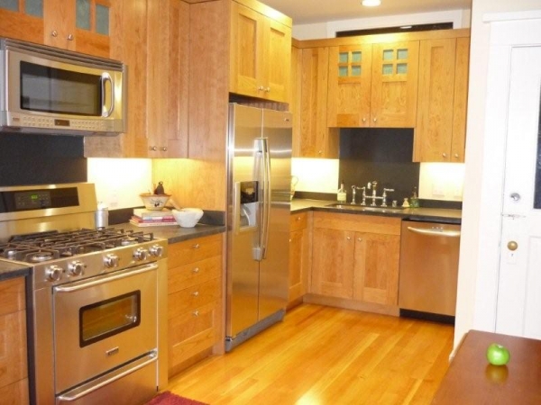 The whole house was remodeled and from top to bottom, front to back. As mentioned, all the historic details were maintained. But, in addition, may modern upgrades were made. The entire kitchen was gutted and rebuilt into a gourmet chef’s kitchen with cherry cabinets, granite counters, stainless steel appliances, 2 pantries and an eat-in kitchen dining area.