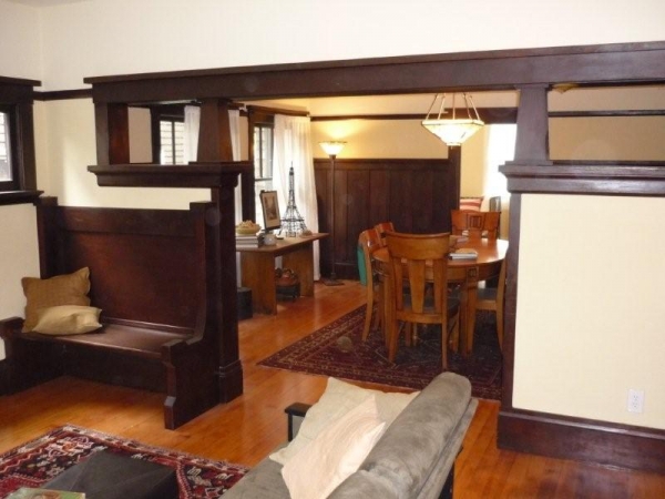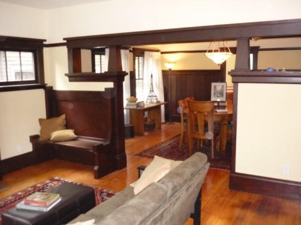 From the minute you enter this home it screams out charm. It has all the classic wonderful craftsman period architectural details. These include: built-in hutches, benches, and shelving are preserved in the living room with the wainscoting and masterful craftsman trim work throughout the house, high boxed ceilings, stunning hardwood floors. In addition, in all areas of the remodel, these Craftsman Features were recreated to make the new actually look the period. This is particularly present in the master bathroom and new kitchen.