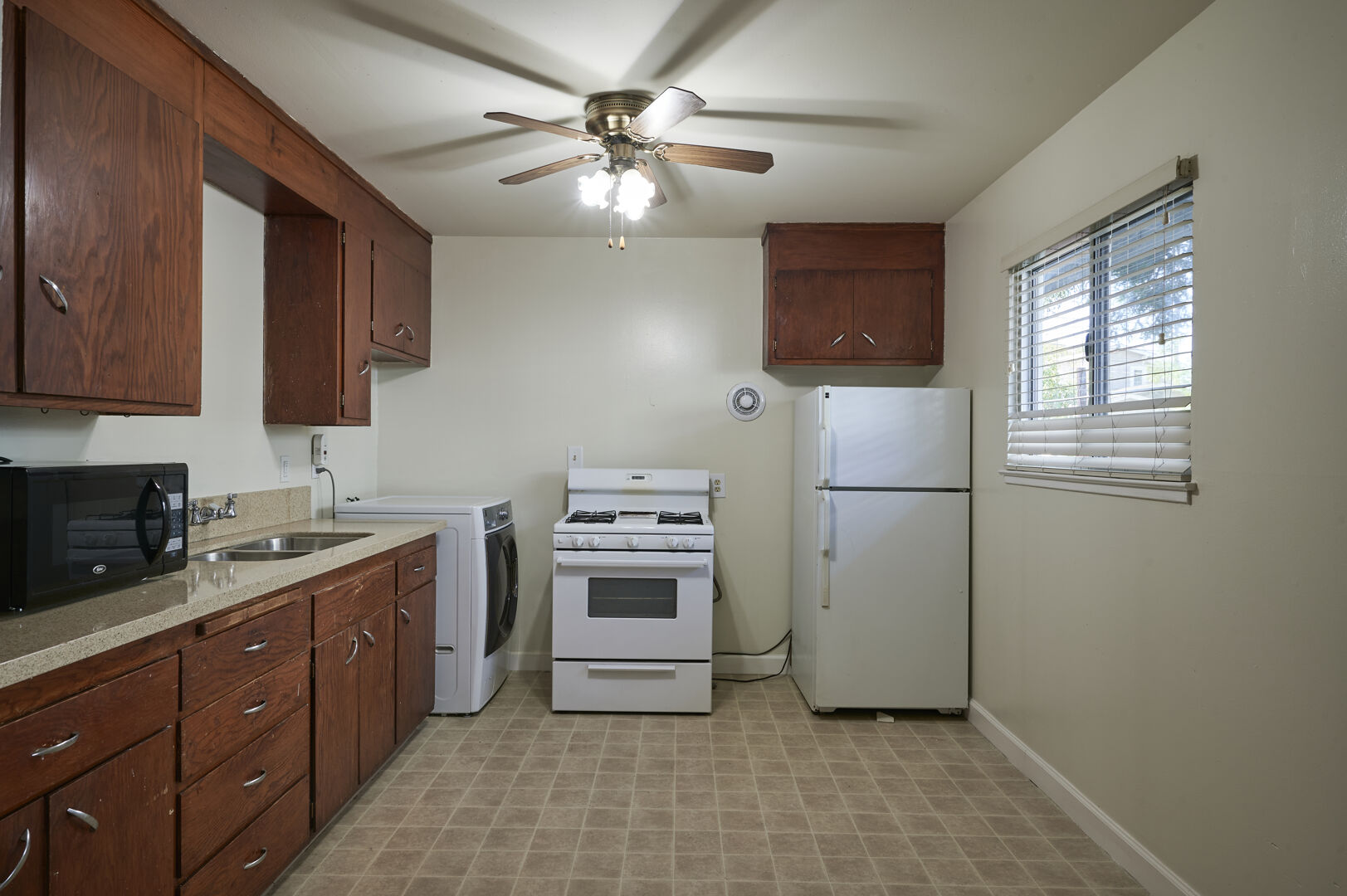 2 Bedroom apartments available on both ground floor and top floor. Top floor apartments have lovely high ceilings. All apartments have hardwood floors and features laundry in unit with a washer / dryer combo. Bedrooms are spacious and living room has lots of natural light with windows facing west. Kitchen has granite counter tops, refinished cabinets and a gas range. This is a must see apartment with the laundry in the unit, plus off street parking also available.